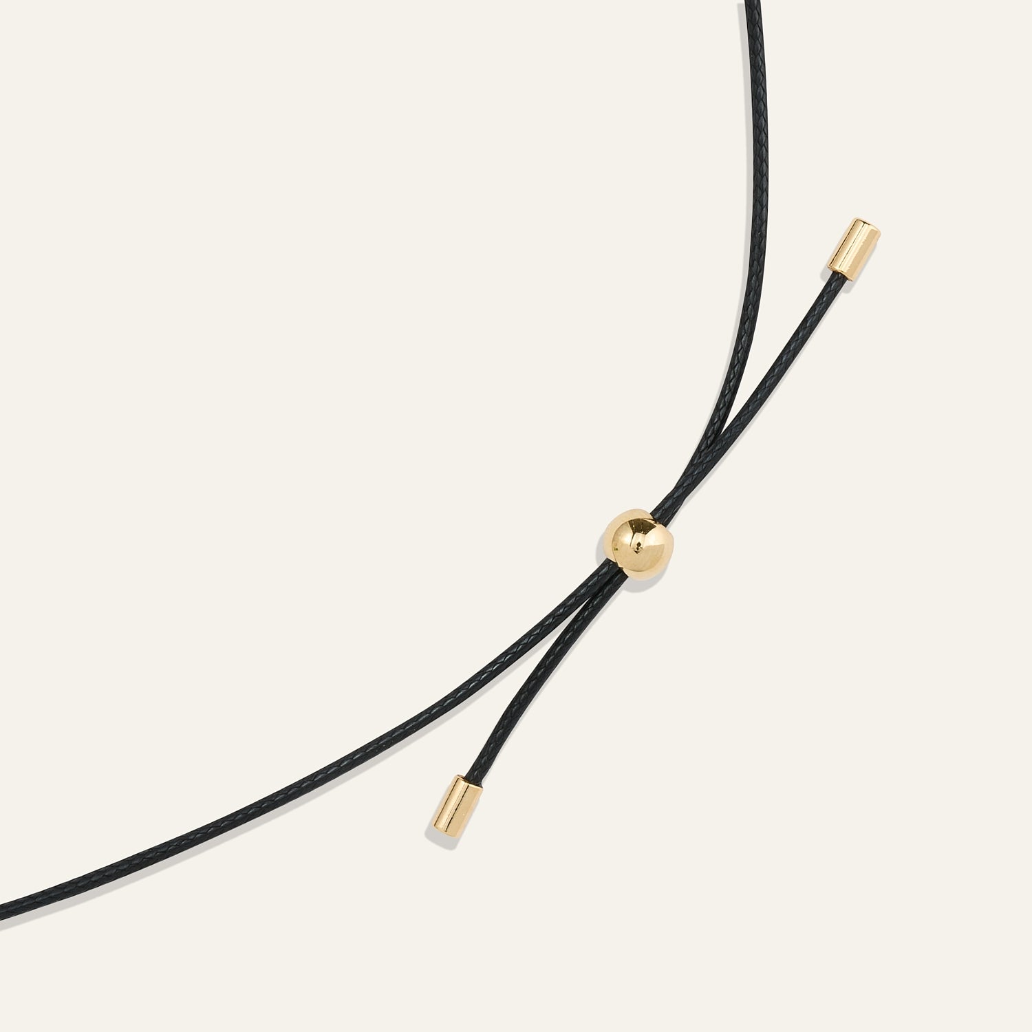 A modern twist on a classic, this adjustable necklace features a sleek pendant suspended on a durable cord. Crafted with brass and polyester, it combines strength with effortless style, making it a versatile addition to any jewelry collection.