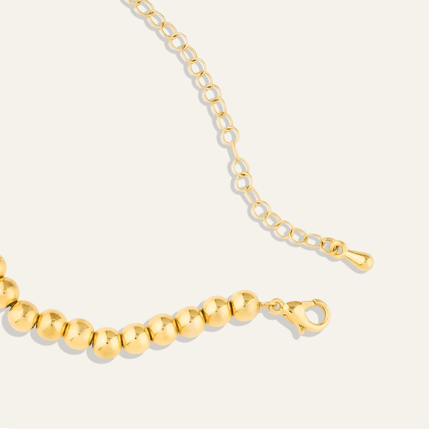 A timeless staple, this Ball Beaded Necklace adds the perfect hint of shine to any look. Featuring a strand of polished beads that sit effortlessly along the neckline, it's versatile enough to wear solo or layered with your favorite chains. A modern classic you'll reach for every day. Crafted with gold plating over CCB.