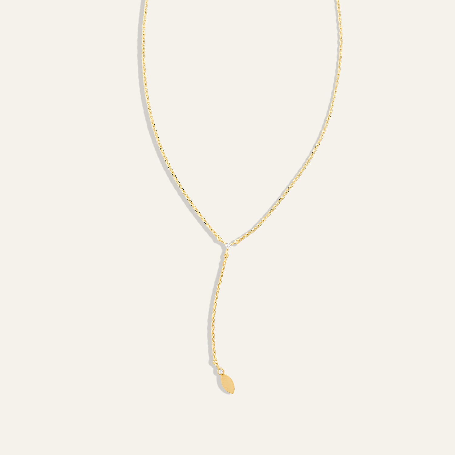 A distinctive piece that elevates your style, this trending necklace captures a distinctive gold dipped cubic zirconia lariat chain necklace design. The perfect way to elevate any outfit, this trending necklace adds a touch of elegance and style. Crafted with gold plating over brass and cubic zirconium.