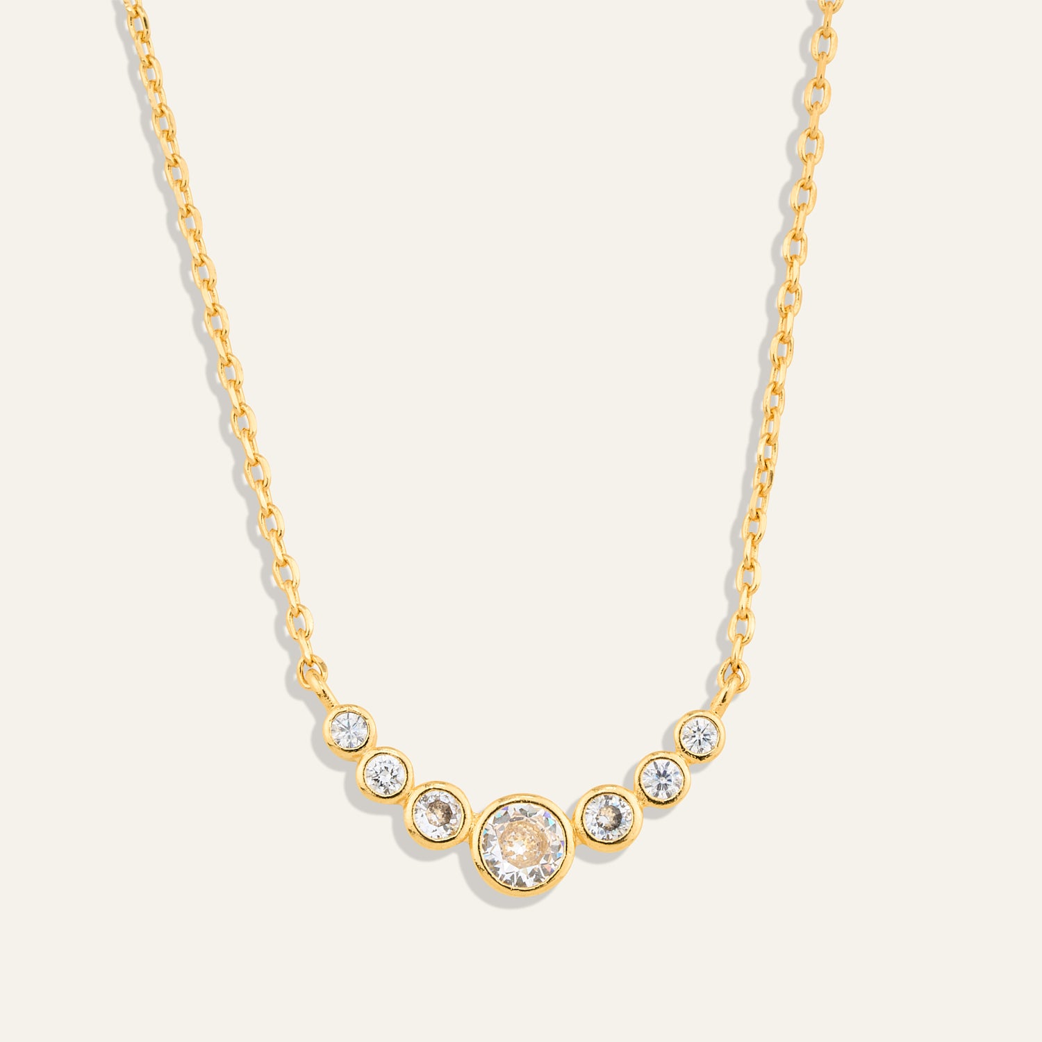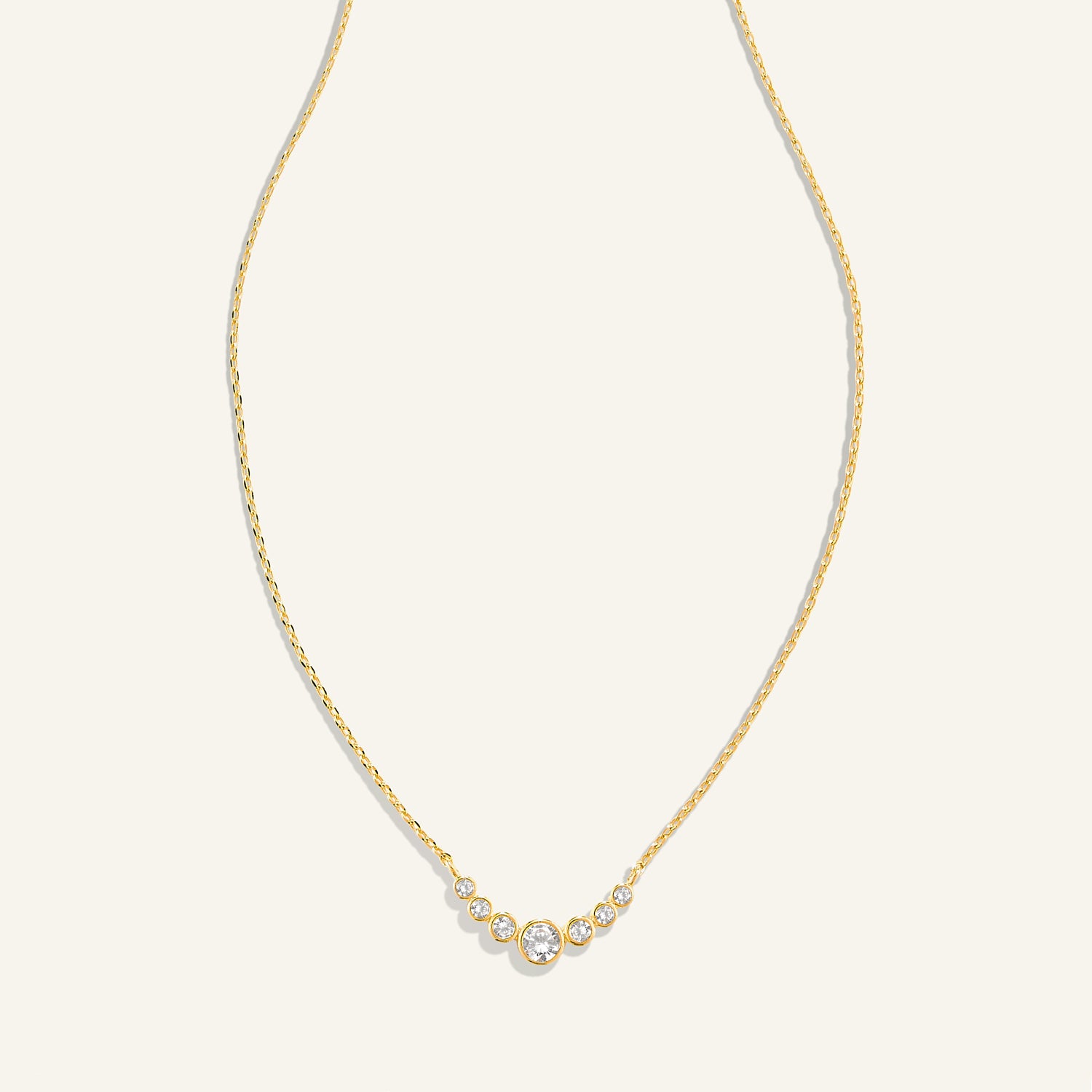 Exuding confidence and effortless style, this trending necklace features an elegant jewel link charm design. Perfectly versatile, it transitions seamlessly from casual days to formal evenings, adding a refined touch of sophistication to any outfit. Crafted with gold plating over brass and cubic zirconium