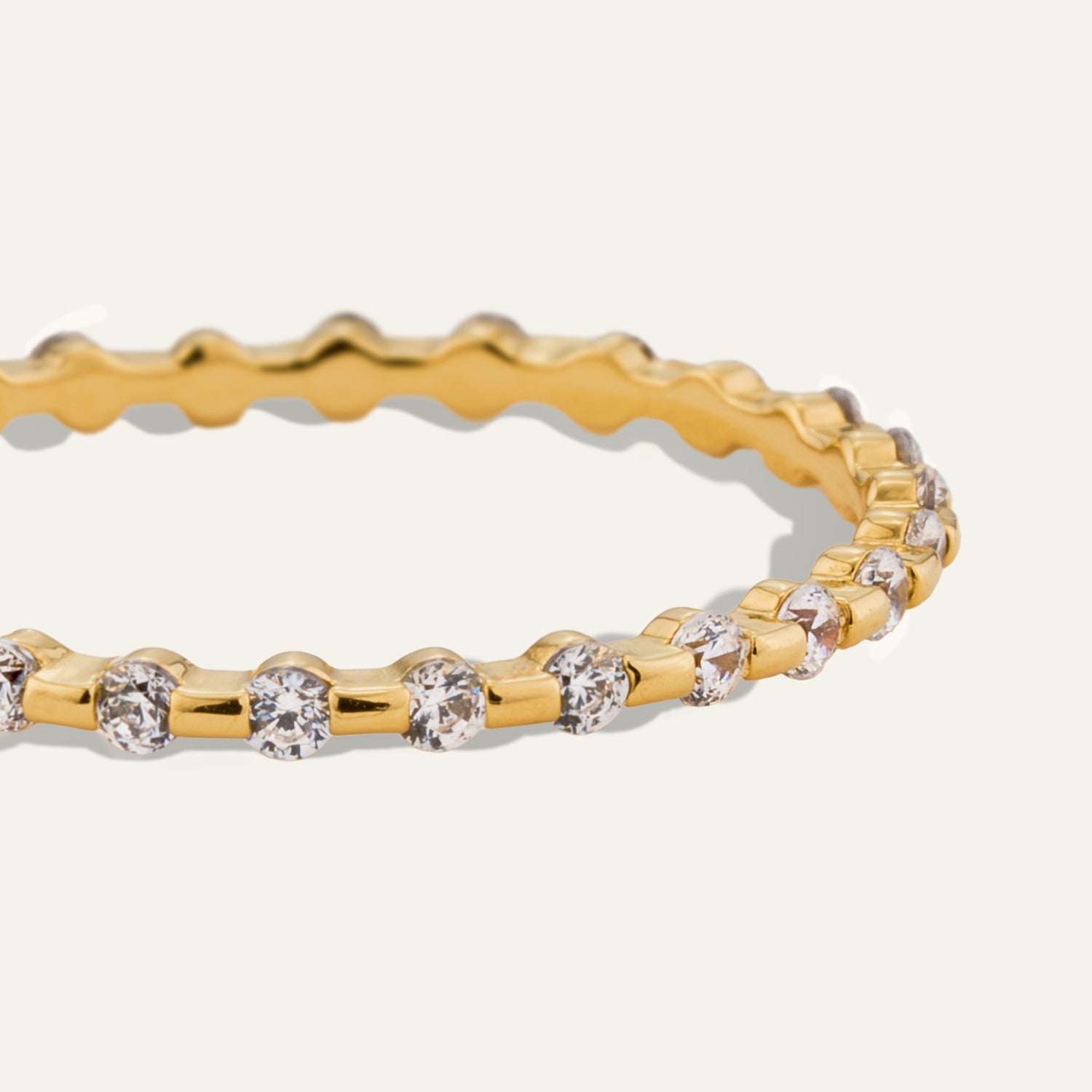 A refined take on everyday elegance. The Aura Ring features a delicate, gold-plating over brass eternity design — effortless on its own, even better stacked. Its slim silhouette and subtle sparkle make it the perfect foundation for a curated ring stack or a touch of shine on its own.