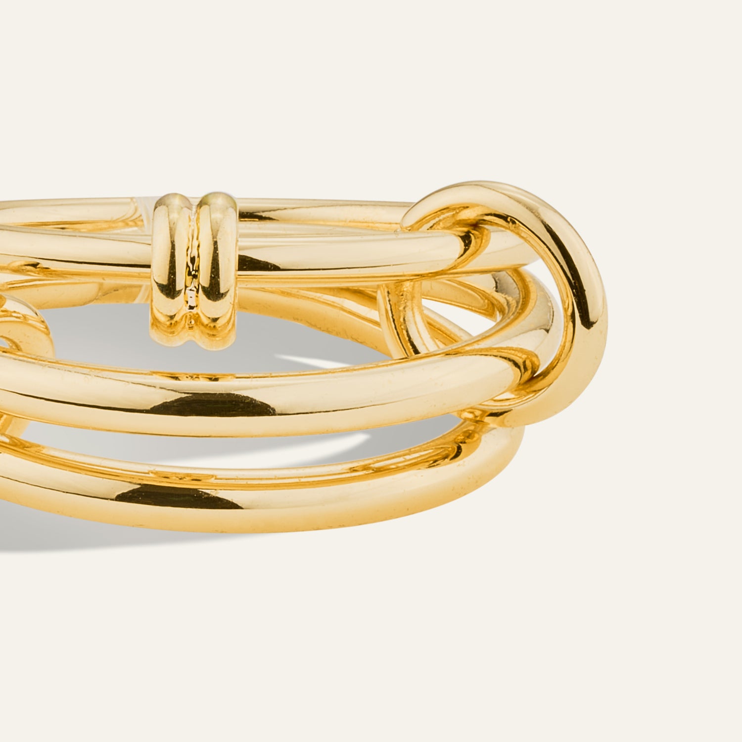 Three bands, endlessly stylish. The Link Set features gold, triple-layered rings with an effortlessly bold, stacked look — no styling required. Crafted in gold-plating over brass for everyday edge with a luxe finish.