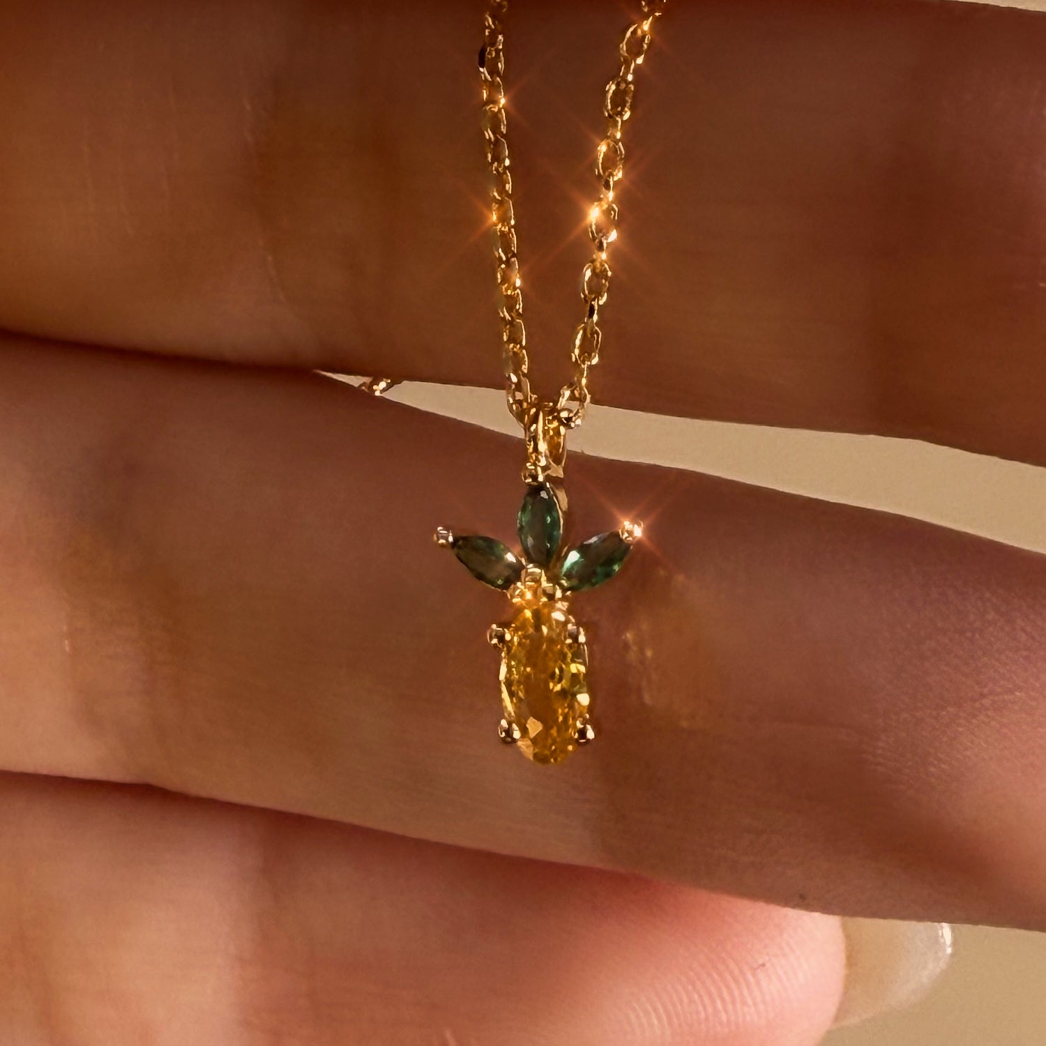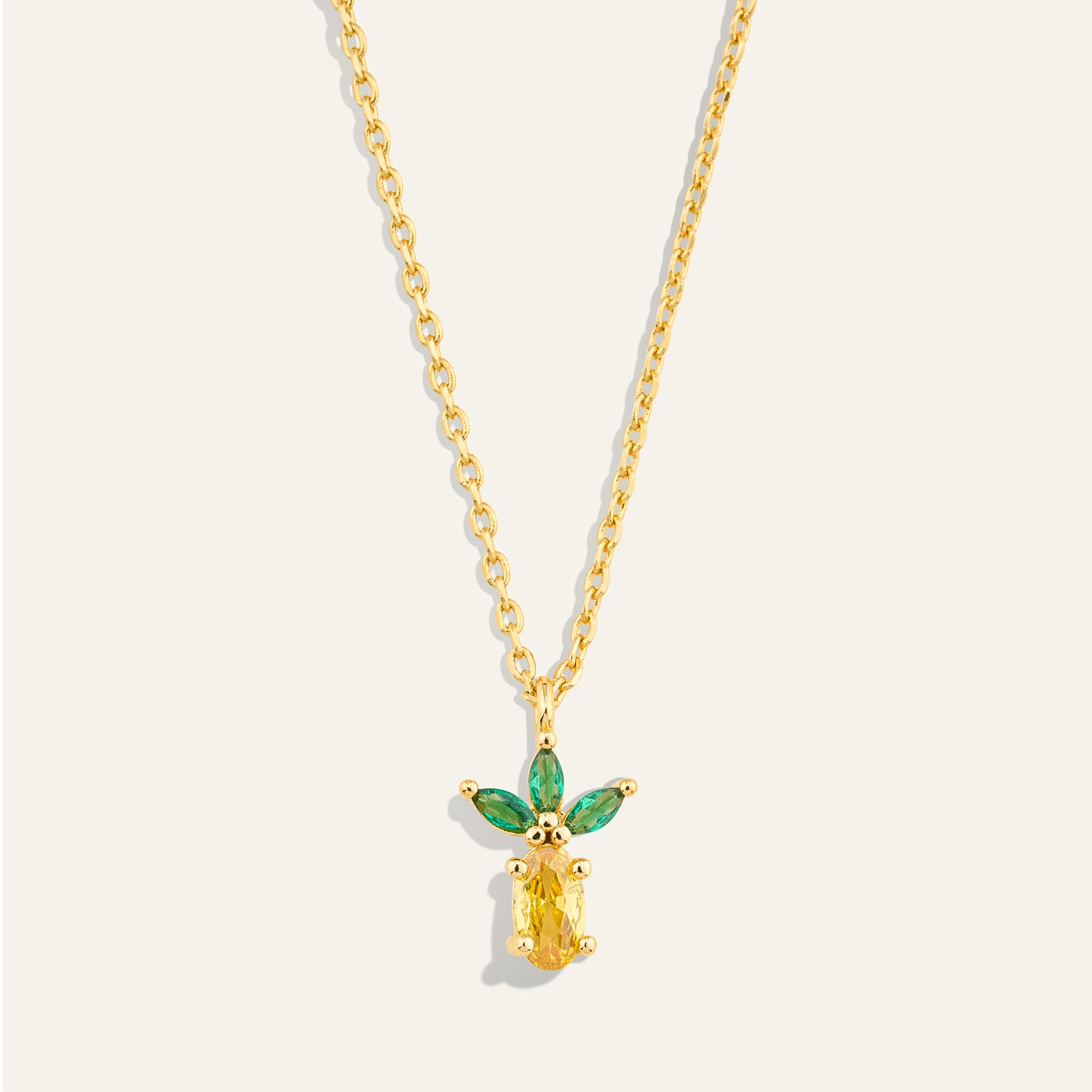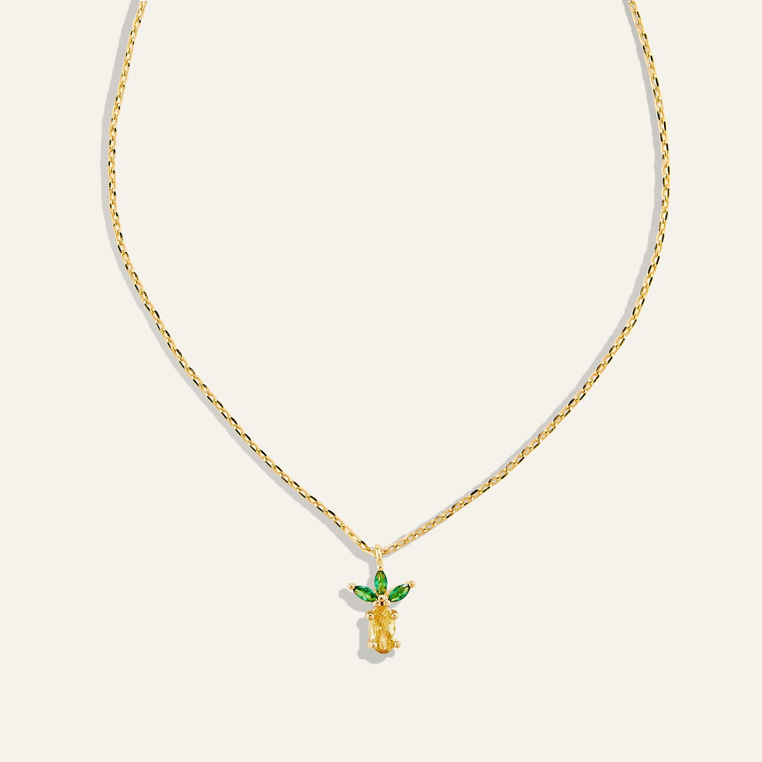 The ideal choice for a polished look, this trending necklace radiates a timeless mini pineapple rhinestone pendant design. Elevate your outfit with this stylish trending necklace that's perfect for any occasion. Crafted with gold plating over brass and glass.