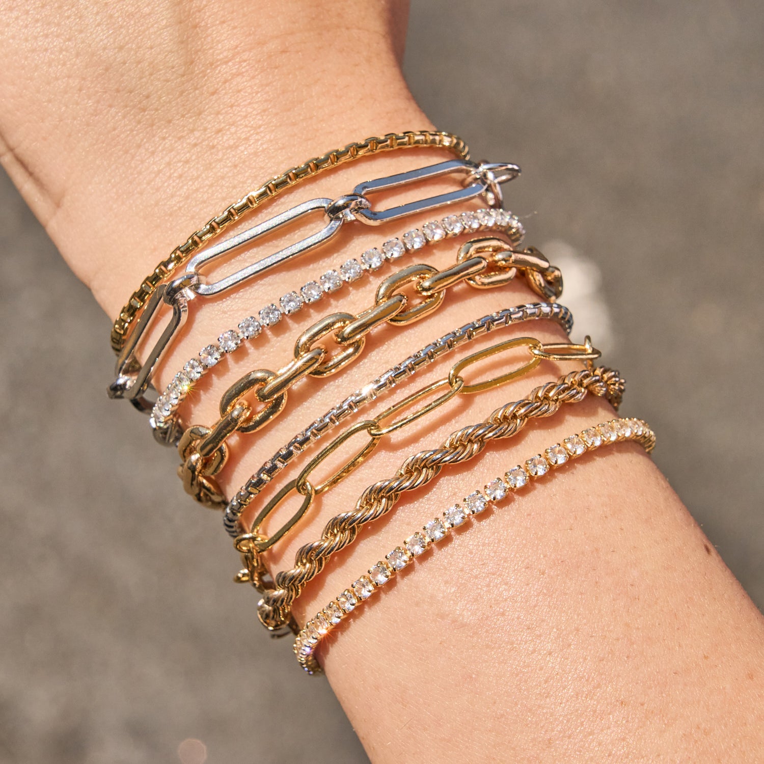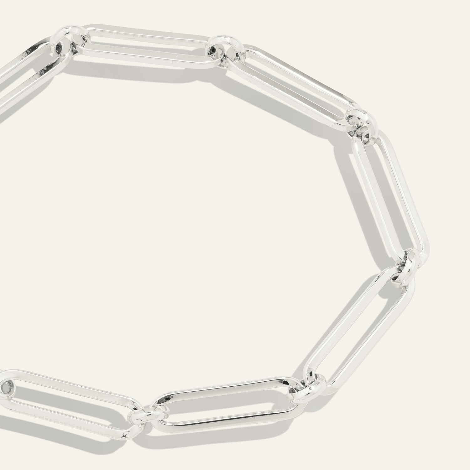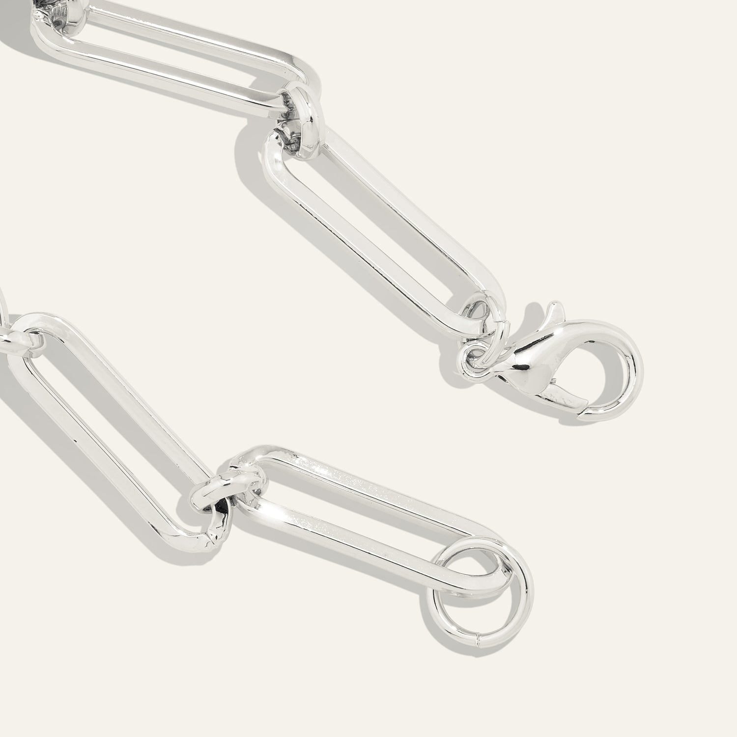 The Oval Link Chain Bracelet features a sleek, timeless design that effortlessly blends classic sophistication with modern edge. Its bold oval links create a clean, structured silhouette, making it the perfect statement piece for both everyday wear and elevated occasions. Crafted with rhodium plating over quality steel.