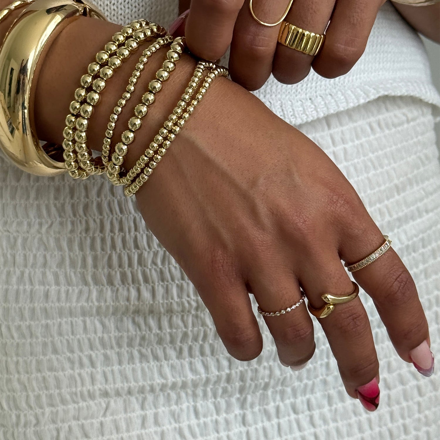 A modern twist on timeless elegance. The Baguette Pave Ring features a sleek band, adding refined sparkle to any look. Perfect for stacking or wearing solo, it’s a sophisticated statement piece. Crafted with gold plating over brass and cubic zirconia.