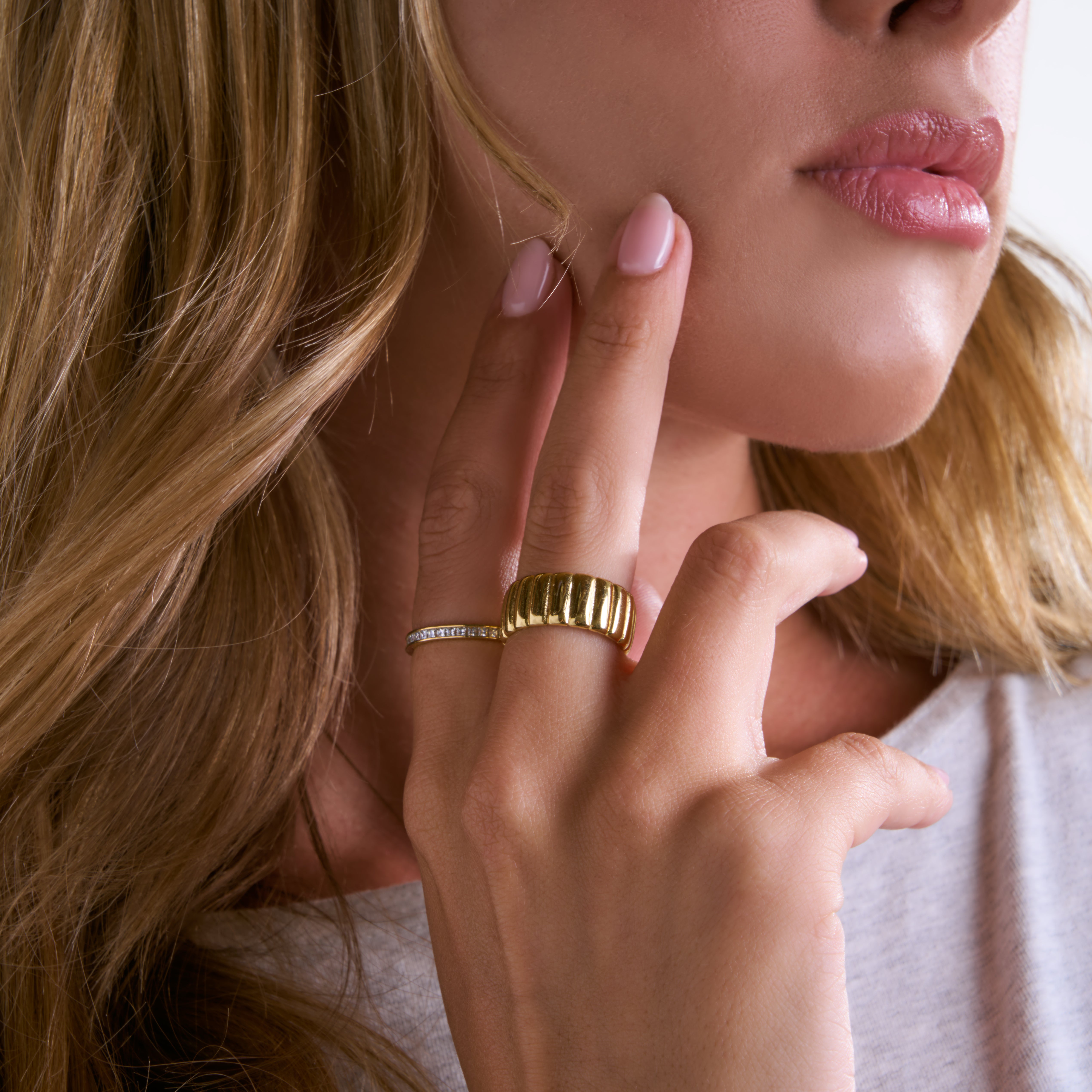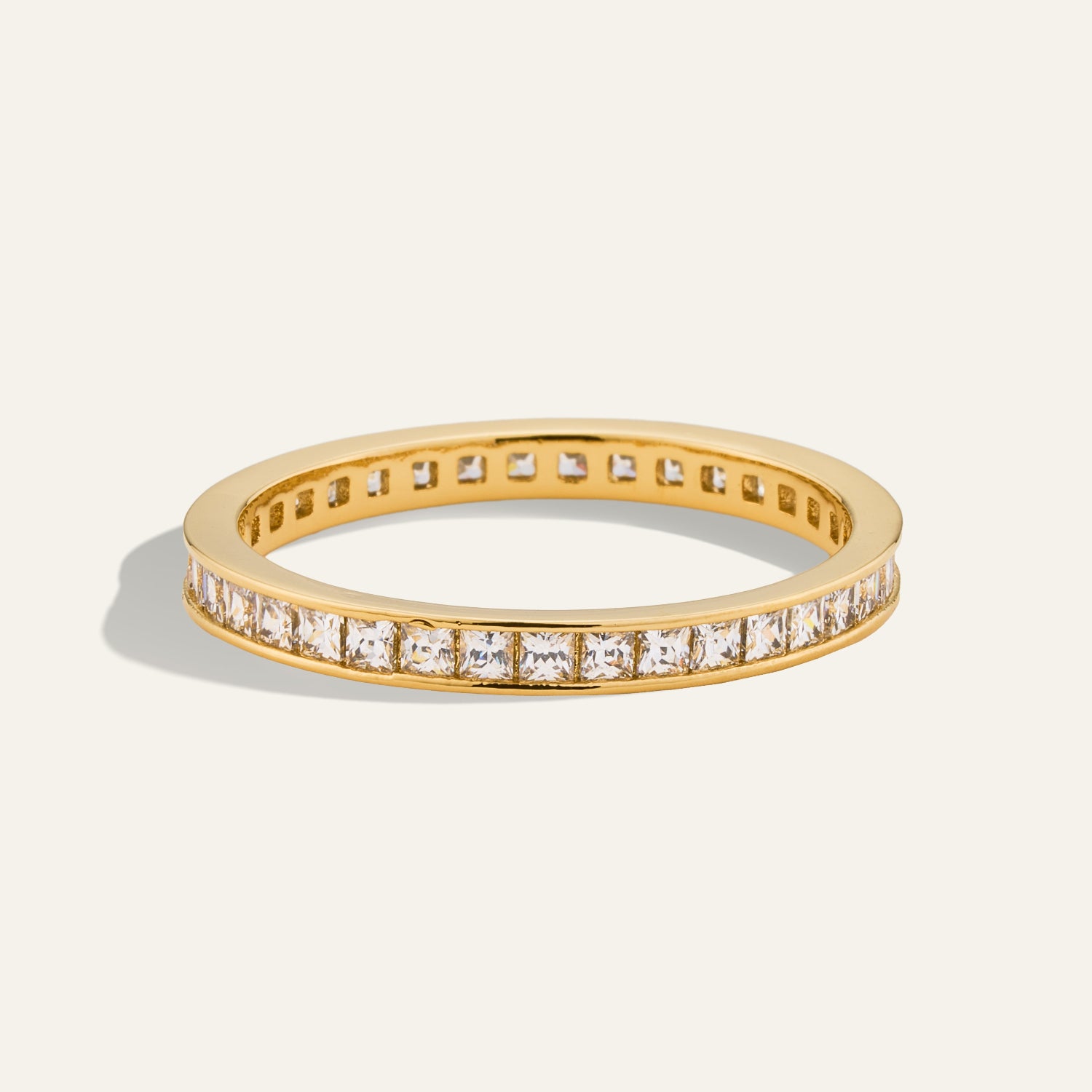 A stunning addition to any collection. The Pave Band Ring features a bold, flat metallic design adorned with pave detailing, effortlessly elevating your style. Crafted with gold plating over brass, it’s a versatile accessory that seamlessly integrates into any look.