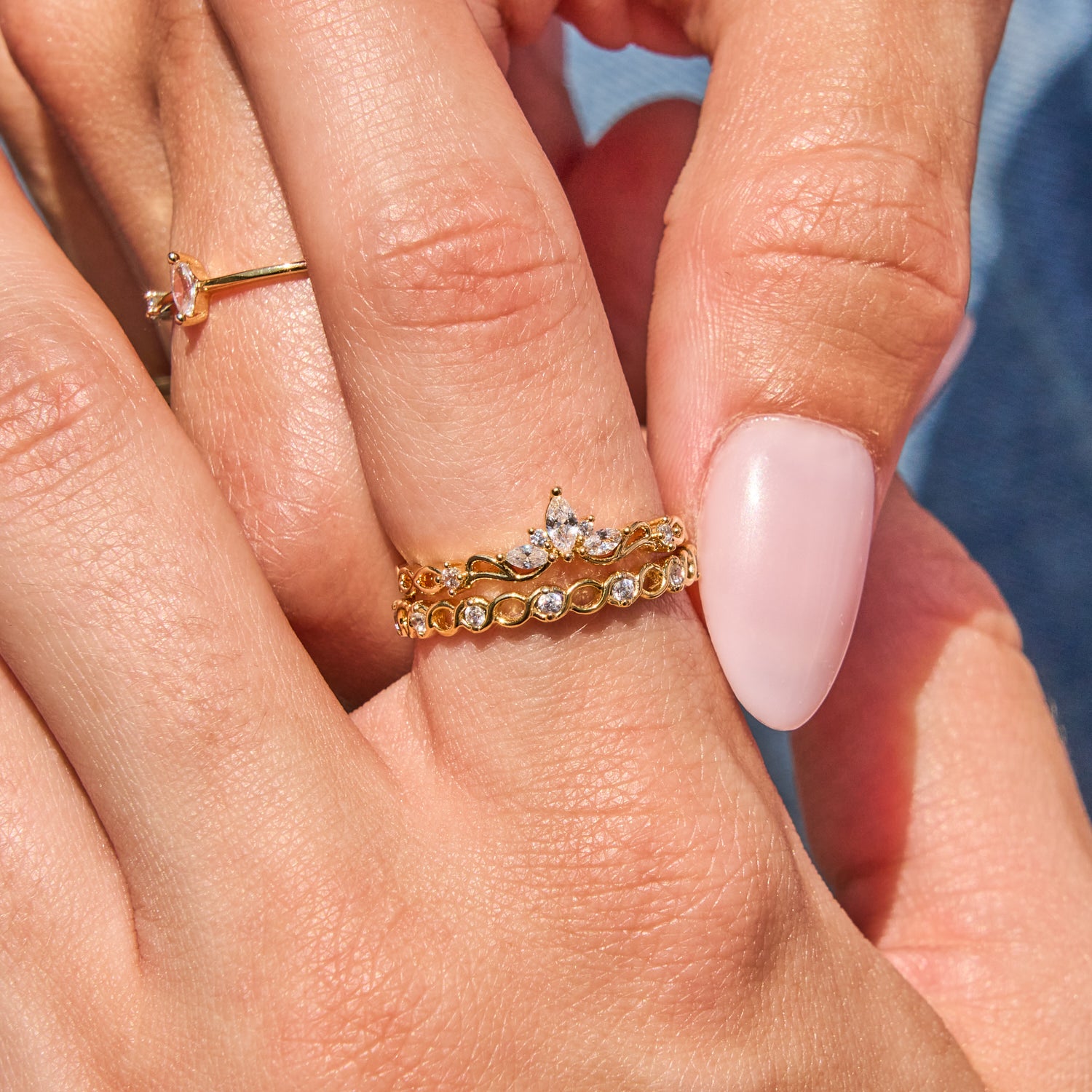 Encircling your finger with a radiant halo of round stones, the Sol Ring brings effortless elegance to any outfit. Its timeless design adds a subtle yet captivating sparkle, perfect for everyday wear or special moments. Crafted with 18k gold dipping over brass and cubic zirconia.