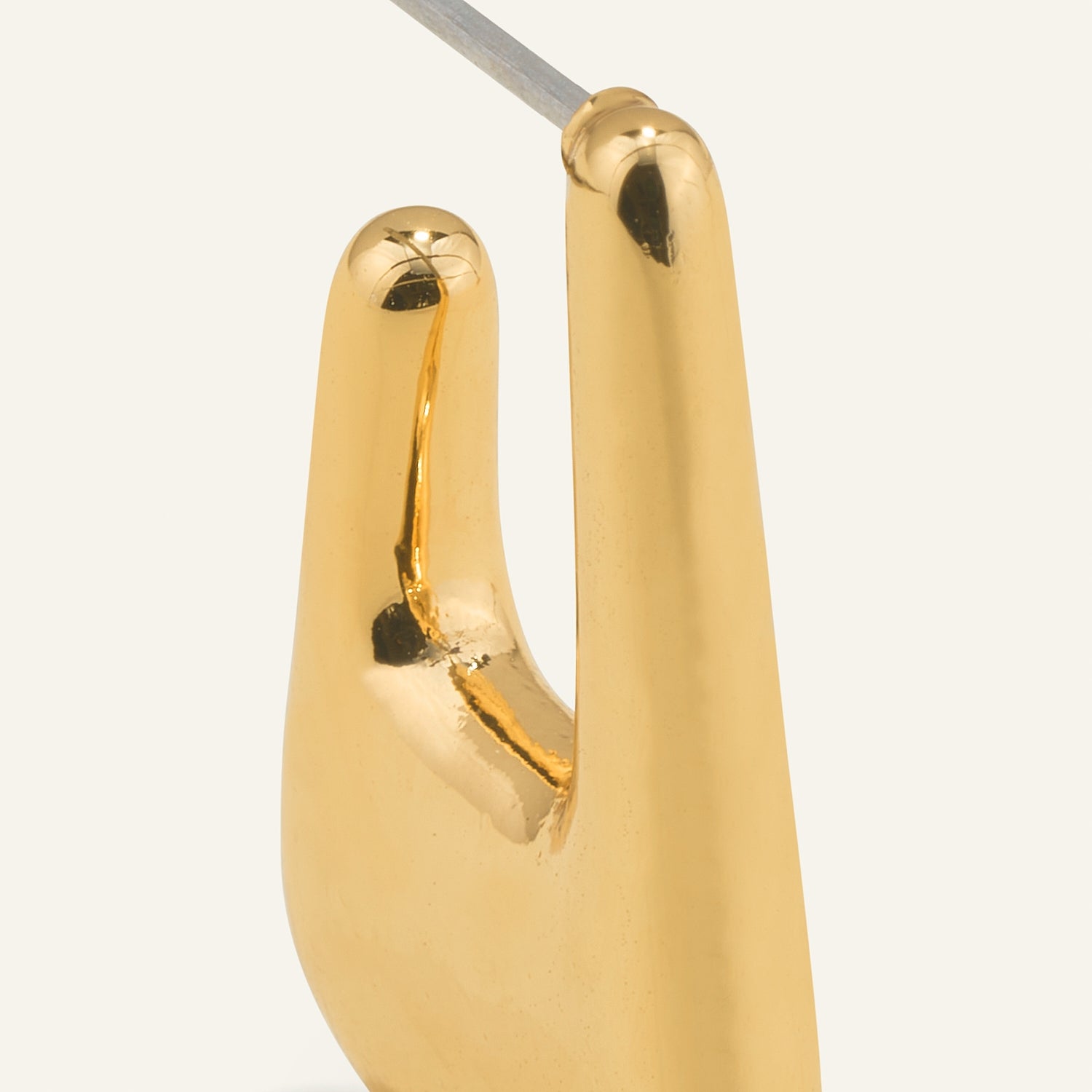 Sharp and modern, these triangle hoops offer geometric edge with a sleek gold finish; crafted with gold plating over brass and stainless steel posts.